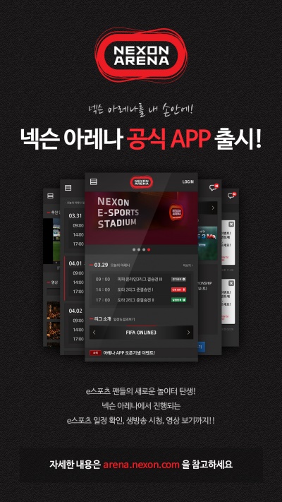 ... 넥슨 e스포츠팀 황영민 팀장은 “넥슨 아레나 앱은 정보뿐 아니라 공식 경기 송출채널로서의 역할을 하는 올인원(all-in-one) 플랫폼을 지향한다”며 “대관신청 시스템 등 온라인에서만 이용 가능한 기능도 점차 도입해나갈 계획”이라고 전했다. 한편, 서울 서초구에 자리한