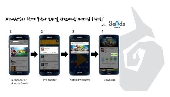 ... 특히 이 서비스는 씨즈와 연동된 모든 광고 네트워크를 사용하고 있어 베트남, 태국 현지 매체는 물론 글로벌 매체들에게도 노출되는 것이 장점이다. 애드웨이즈는 광고주들이 씨즈를 통해 출시 전 게임의 사전예약 마케팅을 진행하고 비용은 출시 후 다운로드 유저 수에 따라 과금되기 때문에