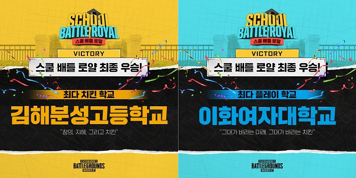... ‘스쿨 배틀로얄’은 11월 28일부터 12월 17일까지 3주간 진행됐다. 김해분성고등학교는 이벤트 기간 동안 총 56명의 학생이 총 1,541개의 치킨(우승)을 차지해 최다 치킨 학교에 등극했으며, 이화여자대학교는 총 220명의 학생이 총 4,962회