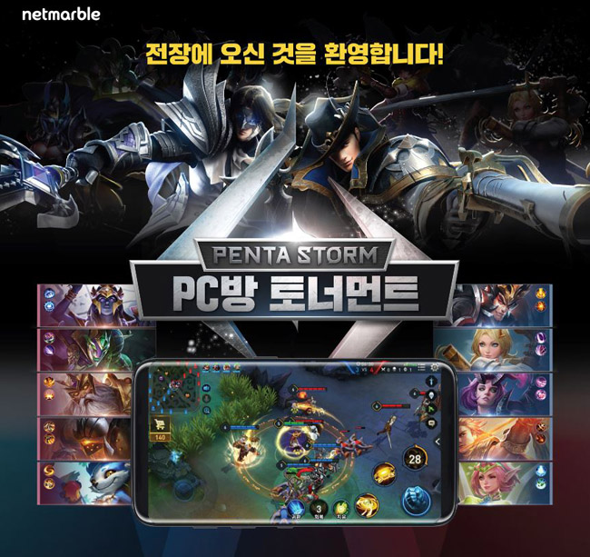 ... 매주 각 PC방 별로 선착순 8팀까지 참여 가능하며 팀 단위 신청이 우선순위를 갖게 된다. 넷마블은 ‘펜타스톰’의 PC방 대회에 참가하는 전원에게 문화상품권 5천원권 및 스킨랜덤박스 쿠폰을 지급한다. 또, 우승팀에게 문화상품권 25만원과 휴대용 선풍기, 준우승 팀에게는 문화상품