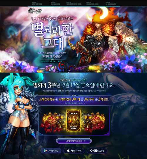 ... 우선 3주년 기념 이벤트 페이지에 매일 접속해 룰렛을 돌리면 ‘초월의 정수’ ‘SSS급 동료 뽑기권’ 등의 고급 아이템을 제공한다. 또 ‘오행시 이벤트’ ‘기념 영상 퀴즈 이벤트’ 참여자 전원에게 ‘SSS급 동료 뽑기권 10장’을 지급하고, 그 인원 중 추첨을 통해