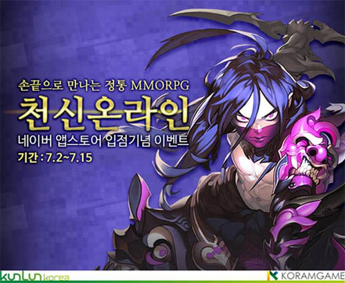 ... 금일(2일)부터는 네이버 앱스토어를 통해 서비스를 시작, 더욱 많은 게이머들과 만나게 됐으며 이를 기념해 7월 15일(화)까지 이벤트를 실시한다. 먼저 이벤트 기간 동안 네이버 앱스토어에서 천신온라인을 다운받는 모두에게 연성부, 명각부, 만리신식부 등 1만원 상당의 아이템이