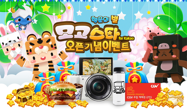 ... 카카오 게임하기 출시와 함께 진행되는 오픈기념 행운이벤트는 정해진 레벨 달성 시 추첨을 통해 미러리스 카메라와 영화예매권, 햄버거세트 쿠폰 등 다양한 경품을 지급하는 레벨달성 이벤트와 친구초대, 리뷰작성 이벤트 등 총 5가지 다채로운 이벤트를 마련했다. 다우기술 김영훈 대표