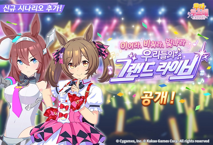 ... 우리들의 그랜드 라이브’는 그랜드 라이브의 재건을 성공시키기 위해 우마무스메들이 분투하는 내용을 다룬다. 이번 시나리오에서는 총 5번의 라이브를 개최하며, 각 라이브를 준비하는 과정을 심도 있는 스토리 라인과 짜임새 있는 연출로 담아냈다. 이와 함께, 시나리오