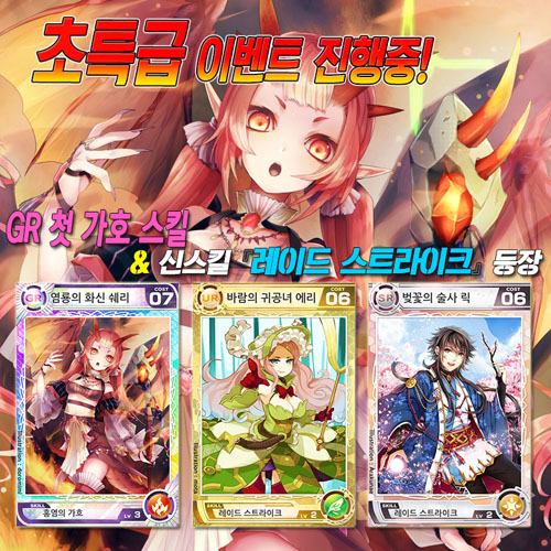 ... 가호 스킬이란 자신의 속성 공격의 대미지를 상승시키는 효과로 불 속성을 가지고 있는 염룡의 화신 쉐리 카드에 강력한 불 속성 공격 스킬을 부여해 준다면, 어떤 전투에서도 승기를 잡을 수 있을 것으로 보인다. 월드 1과 월 13의 시즌종료 및 월드통합이 예정된 7월 7일 까지