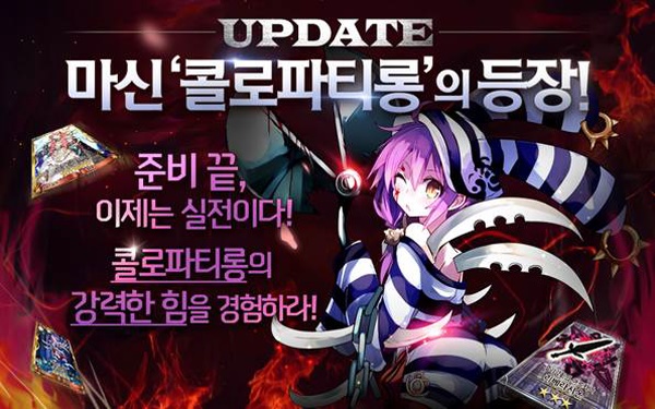 ... 특히 이번 마신전에서는 기존 마신 격파 보상 외에도 유저가 마신을 격파한 최종 레벨에 따라 ‘콜로파티롱’ 캐릭터와 레어 등급의 무기 ‘프레임액스’, ‘정령석’ 등 초호화 보상을 추가로 지급된다. 이와 함께 마신 ‘콜로파티롱’에 대항하기 위해 인기 캐릭터 ‘성왕녀 유리아나’도