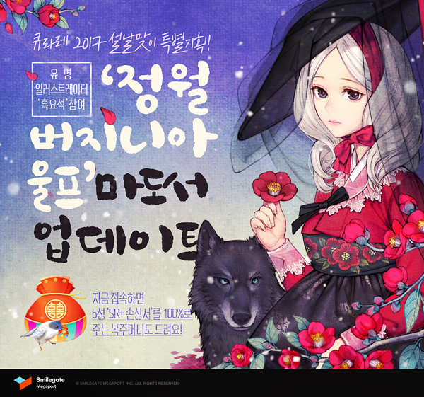 ... 특히, 공방전 기간 중 2주동안만 한정적으로 획득 가능한 ‘정월 버지니아 울프’ 마도서는 유명 일러스트레이터 ‘흑요석’이 제작에 참여했으며 ‘리메이크 마도서 투표’에서 1위로 선정돼 새롭게 태어난 ‘온천의 장자’ 마도서 패키지도 공방전 기간 동안 특별히 판매된다. 스마일게이트
