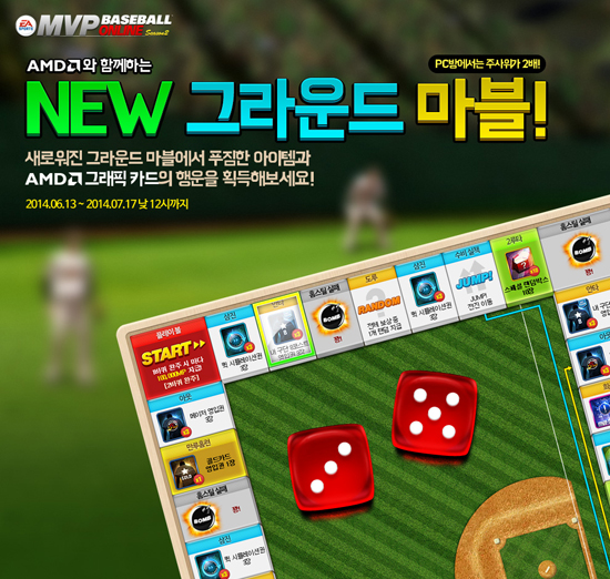 ... 특히 말판의 칸은 희생타, 파울 등 야구 용어로 구성됐으며, 블루마블의 무인도 같은 ‘병살타’는 주사위 숫자 4이상 나와야 탈출이 가능하다. ‘그라운드 마블’을 6바퀴 이상 완주한 이용자에는 '투수 골드카드 영입권', '타자 골드카드 영입권'을 각 1장씩 증정한다. 특