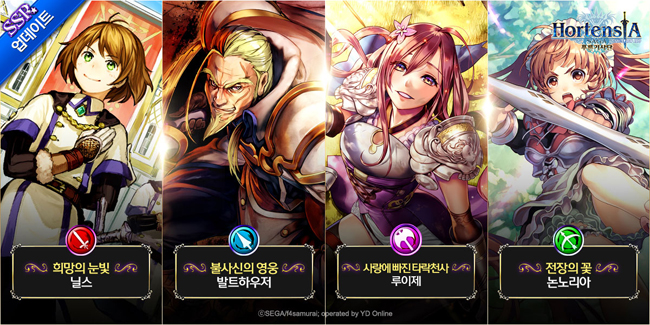 ...이번 업데이트를 통해 시나리오 제11장 ‘약속’이 오픈됐으며 신규 캐릭터 4종(닐스, 발트하우저, 루이제, 논노리아)이 추가됐다. 회사 측은 내달 15일까지 고급 상점 10연속 뽑기 3회 진행 시 신규 캐릭터를 포함한 SSR 캐릭터 중 한 가지를 선택할 수 있는 뽑기 이벤트를 실시