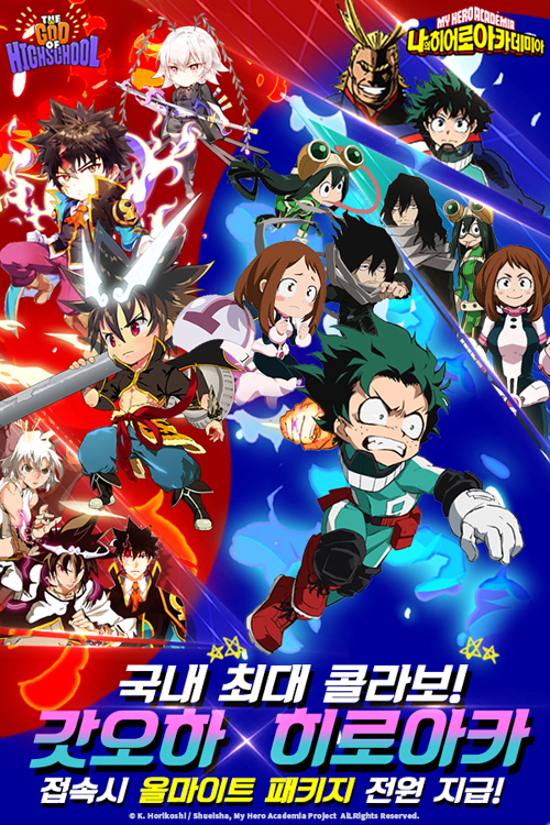 ... 귀여운 2D 캐릭터로 등장한 ‘올마이트’ ‘아이자와 쇼타’ ‘아스이 츠유’는 이벤트 뽑기를 통해 획득할 수 있다. 지난 업데이트에 이어 ‘히로아카’ 캐릭터를 위한 13종 전용 ‘퀘스트’도 진행된다. 애니메이션의 스토리를 만끽할 수 있는 특별 던전에서는 노우무, 시가라키 토무라,