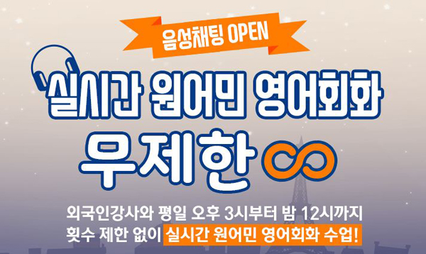 ... 원어민과의 음성채팅을 원하는 이용자들은 오잉글리시의 ‘음성채팅’ 메뉴에 접속해 원어민 방에 입장하면 된다. 이 방에서 이용자들은 예약없이 가능한 실시간 수업을 횟수제한 없이 무제한으로 누릴 수 있다. 원어민 방에는 월요일부터 금요일까지, 오후 3시부터 자정까지 원어민