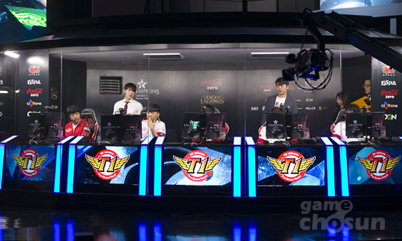 ...SKT가 1세트를 선취했다. 롤챔스 최대 빅매치라 불리는 이동통신사 대결답게 양 팀은 초반부터 화끈한 킬 교환을 펼쳤다. SKT는 라인전 위주로 킬을 따냈고 KT는 텔레포트 등 합류전으로 이득을 보며 팽팽한 접전을 연출했다