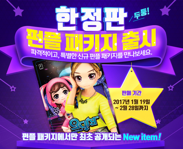 ... 이번 패키지는 디에고의 스페셜 선물상자 20개, 닉네임 색연필 1개, 스페셜 교환 티켓 1개로 구성됐다. 디에고의 스페셜 선물상자는 오디션 쇼핑몰에서는 판매하지 않는 희귀한 아바타들과 커플포인트 등 다양한 상품을 획득할 수 있는 아이템이며, 특별히 이번 펀플 패키지에서는