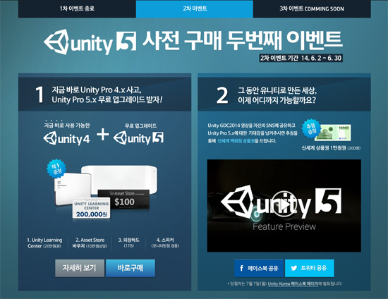 ... 바로 고객과의 ‘소통’을 진행한다는 것이다. 다양한 사은품을 옵션으로 제시하여 선택권을 소비자에게 주고, SNS에 영상을 공유하고 댓글을 확인해볼 수 있도록 구매자와 스킨쉽을 시도했다. 2차 이벤트 기간 내 모든 구매자에게 에셋 스토어 구매권, 유니티 러닝센터 수강 할인권,