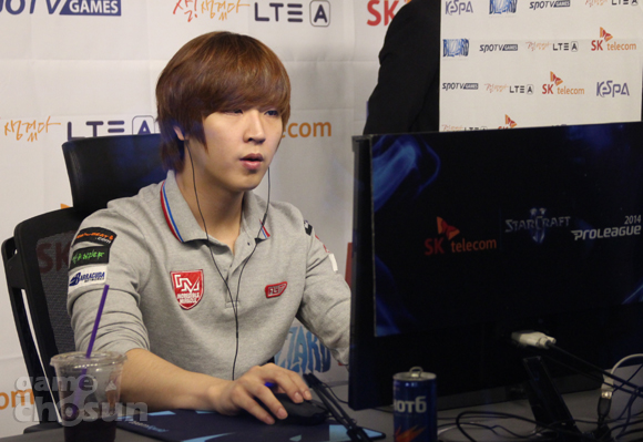...한지원 : 실감은 안난다. 오늘 3대0으로 이길 줄 알았는데 제 차례가 와서 2승을 거둘 수 있어서 기쁘다. Q : 다른 종족전에 비해서 동족전 성적이 안 좋은 편이었는데 ? 한지원 : 우선 상대방의 빌드를 예상해서 8산란못을 했다