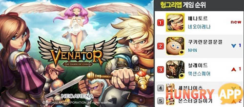 ...co. kr) 등에 기초하고 있습니다. <편집자주> 네오아레나의 원터치 공성배틀 RPG '베나토르'가 출시 이후 티스토어 게임순위 1위에 등극한데 이어 헝그리앱 게임순위에서도 1위를 차지해 눈길을 끌고 있다