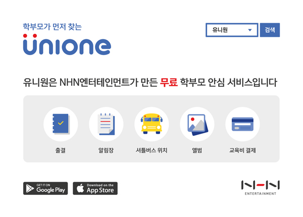 ... <유니원>은 학원과 학부모 소통, 스마트한 학원관리를 제공하는 서비스로, 2015년 6월 출시 이후 교육 현장의 다양한 니즈를 담은 ▲학생 관리 시스템, 학부모 소통을 위한 ▲알림장 전송, ▲셔틀버스 실시간 위치 조회 ▲교육비 간편결제 서비스 등 학원 운영에 필요한