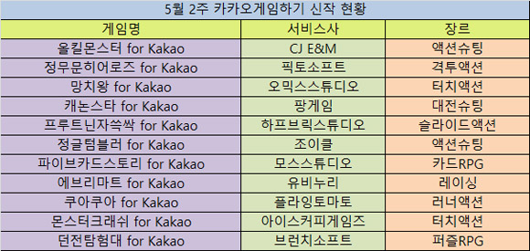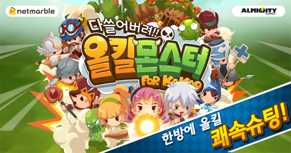 ... ◆ 군단 전투가 묘미인 슈팅게임 올킬몬스터 for Kakao 올킬몬스터는 태양의 전사, 바람의 신궁, 달빛 마법사 등 3종의 영웅과 검사, 기사, 폭탄병사 등 다양한 지원군으로 군단을 만들어 공격해오는 적을 쏘고 피하면서 전진하는 방식의 캐주얼 슈팅게임이다. 또한 영웅