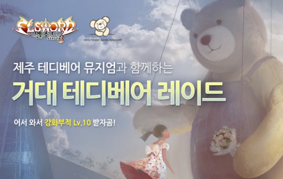 ... 특히 이벤트 기간 동안 거대 ‘테디베어 레이드’를 10회 이상 성공하는 유저를 대상으로 추첨을 통해 ‘제주 테디베어 뮤지엄’의 ‘베이비 베어 브라운’ 인형을 선물한다. 이 밖에도 제주와 경주에 있는 ‘테디베어 뮤지엄’에서는 방문객에게 4만 원 상당의 한정 아이템을 얻을