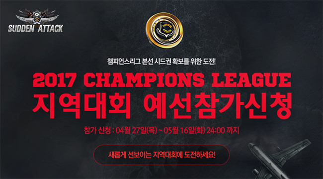 ...한편 국내 FPS(일인칭 슈팅) 게임대회로 최대 규모를 자랑하는 ‘서든어택 2017 챔피언스리그’는 총 상금 2억 7000만 원, 최종 우승 상금 1억 원 규모로 오는 6월부터 온·오프라인 예선을 진행, 이를 통과한 팀들을 대상으로 7월 14일부터 15주간 본선대회를 실시한다. [