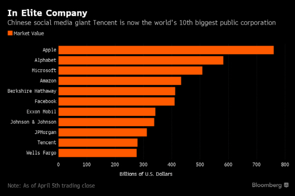 ... 마감가 기준 텐센트의 시가총액은 약 2조 3541억 홍콩달러(약 342조원)로 미국 달러로 환산하면 약 3025억 달러다. 이는 현재(4일) 삼성전자 시가 총액(약 317조원)을 넘는 수치다. 또 텐센트는 시총 3000억 달러를 돌파한 IT 기업을 지칭하는 ‘테크 클럽’에 입성