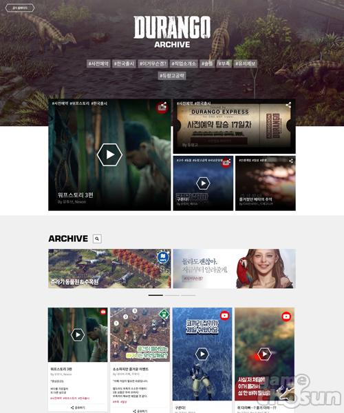 ... ◆ ‘야생의 땅: 듀랑고’의 흩어져 있는 콘텐츠를 한 곳에 모았다! 재미와 정보를 동시에!‘듀랑고 아카이브’는 이름 그대로 다양한 콘텐츠와 유저들의 기록을 ‘보관(Archive)’하기 위한 목적으로 제작됐다. 방대한 콘텐츠와 세계관, 높은 자유도로 게임 내 다양한 상황이 벌어지