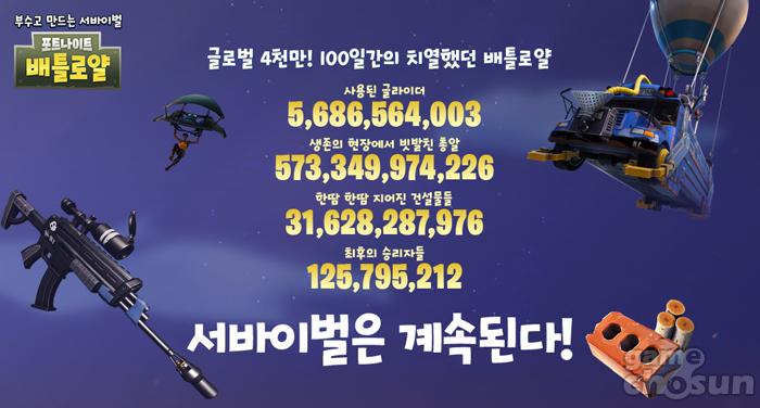 ...또한 5700억 발이 넘는 총알이 발사되었고, 300억 개가 넘는 건축 구조물들이 지어졌으며, 글라이더는 57억 번 가까이 펼쳐졌다. 그리고 지금까지 1억2000만 명이 넘는 최후 승리자들이 배출됐다. 에픽게임즈가 손꼽은 '포트나이트'의 성공 요인으로는 6년여에 걸쳐 개발한 건설