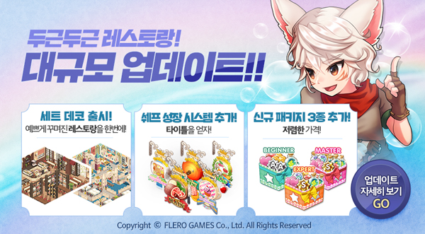 ... 또 전문가와 고수, 달인, 전설 등의 타이틀을 얻을 수 있는 ‘쉐프 성장 시스템’이 추가돼 획득한 JOB 포인트로 쉐프를 훈련시켜 다양한 요리를 연구해 명예로운 레스토랑 타이틀 간판을 얻을수 있다. 그밖에 레벨이 낮은 이용자를 위해 루비와 에너지팩, S-A급 점원