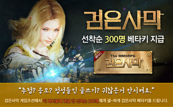 ... 300명에게 지급될 예정이었던 베타키는 40분만에 종료되며 2014년 기대작인 '검은사막'에 대한 인기를 실감케 했다. 검은사막의 2차 CBT는 지난 22일부터 내달 11일까지 매일 오후 3시부터 자정에 걸쳐 즐길 수 있다. 이번 테스트에서는 50레벨 콘텐츠까지 체험할 수