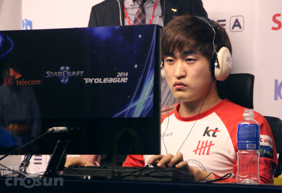 ... 조성주는 앞마당 확장기지를 확보한 이후 이른 타이밍에 해병의 공격력 업그레이드를 준비했다. 이후 조성주는 해병과 불곰을 대동해 프로토스의 앞마당을 조였고 추적자를 끊어내는 성과를 거뒀다. 이에 불리함을 느낀 이제현은 무리하지 않고 거신과 불사조를 확보하며 확장기지를 추가