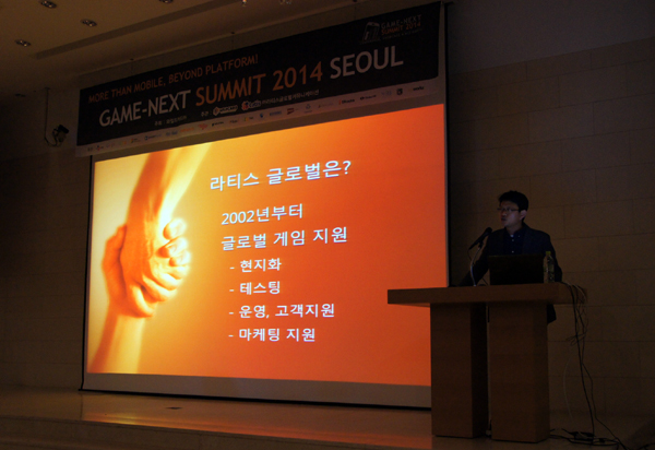 ... 윤강원 대표는 이날 현지화 작업을 통해 느꼈던 해외 진출의 어려움과 이를 극복할 수 있는 방법을 소개했다. 그는 "국내 모바일게임 시장 상황이 썩 좋지만은 않다. 전체 총 매출은 올랐지만 개발자들이 느끼는 체감 온도는 높지 않다"면서 "모바일게임의 평균 개발비는 6개월을