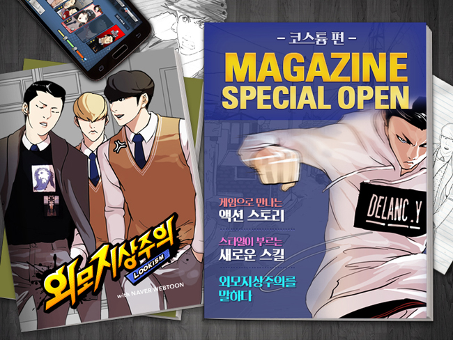 ...지난 13일 첫 선을 보인 ‘외모지상주의’ 매거진은 게임에 대한 정보를 알 수 있는 스크린샷을 엿볼 수 있는 온라인 잡지로 이번 ‘코스튬 편’에서는 코스튬 시스템이 처음으로 공개됐다. 특히 예고된 바에 의하면 코스튬 스타일에 따라 새로운 스킬을 구현할 수 있을 것으로 보여 기대감