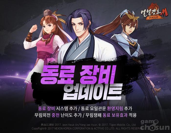 ... 일요일은 모든 속성의 동료가 입장할 수 있다. 이와 함께 무림외전 콘텐츠의 최고난도 ‘중천’을 추가하고, 무기, 방어구, 장신구 등 동료 장비를 새롭게 선보였다. 동료 레벨 50 이상 적용할 수 있으며, 승급 및 성급 강화를 통해 성장할 수 있다