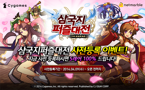 ... 또한 유명 성우 40여명의 목소리가 담긴 완벽한 음성지원으로 보다 실감나는 전투를 경험할 수 있다. 넷마블 한지훈 본부장은 “‘삼국지퍼즐대전’은 간단한 조작법으로 유명 장수들이 보유하고 있는 화려한 스킬과 박진감 넘치는 필살기를 구사할 수 있는 게임이다”며 “탄탄한 게임성을