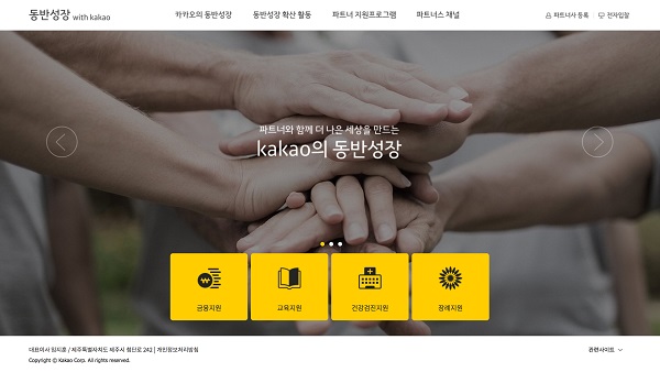 ...또 파트너의 유동성 확보와 안정적인 사업을 위해 모든 결제 대금은 100%현금으로 지급하며 명절 기간 대금 선지급, 대/중소 협력기관과 함께 정부지원 사업 참여 등의 기타 자금지원 프로그램도 운영한다. 파트너 임직원에게는 카카오 임직원과 동일한 장례용품과 건강검진도 지원한다. 아