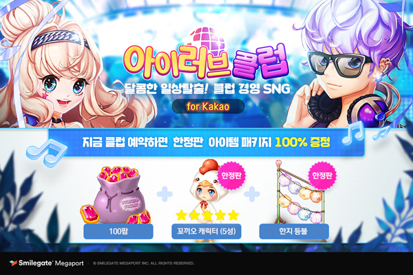 ... 이번 사전 등록은 내년 1월 8일까지 카카오게임 프로모션 페이지에서 진행되며, 참여자 전원에게 한정판 5성급 캐릭터와 인테리어 아이템 등 게임 재화 5만원 상당의 아이템을 100% 지급한다. 또 친구를 프로모션에 참가 시킬 경우 한정판 5성급 댄스 아이템 등도 추가로 지급 받