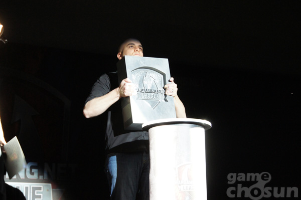 ... 빅터 키슬리 대표는 그랜드 파이널 개막 축사를 진행했다. 축사 막바지, 모하메드 파들 북미유럽 e스포츠 디렉터가 이번 대회 우승 트로피 '모노리스'를 들고 무대에 등장했다. '모노리스' 비석이라는 이름처럼 육중한 무게감을 가진 트로피의 등장에 개막식을 지켜보는 관중들은 크게
