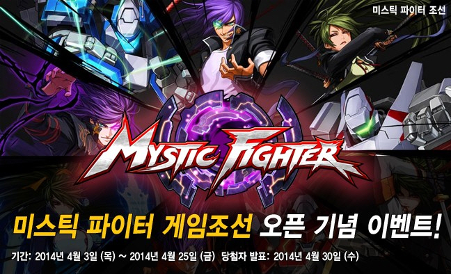 ... 또 6일까지 매일 지정된 시간에 접속한 10레벨 달성 이용자 중 추첨을 통해 총 3000개의 문화상품권을 지급하고 캐릭터 생성 및 지정된 레벨 달성 시 마다 게임 내 다양한 보조 아이템을 지급하는 레벨업 이벤트도7일까지 진행한다. 미스틱파이터는 가까운 미래 도시의 SF(공상