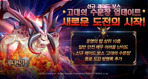 ... 유저들은 고대의 수문장 발견 시 혼자 또는 친구들과 함께 사냥할 수 있으며 보상으로 장비 보석, 스킬북, 액세서리 등을 얻을 수 있다. 또 일반 던전에 ‘매우 어려움’ 난이도 지역이 추가됐다. 매우 어려움 난이도 지역은 총 60개의 스테이지로 구성 돼 있으며 10레벨에
