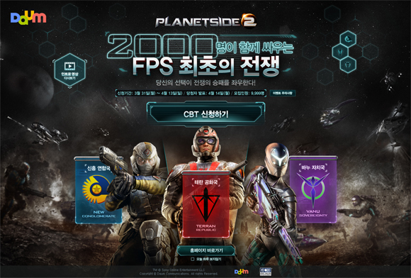 ... CBT 신청과 함께 게이머들은 자신의 FPS 성향을 확인할 수 있는 테스트를 진행해, 자신에게 잘 어울리는 세력을 추천 받을 수 있다. 또 3개의 세력별 선택 비율을 홈페이지에서 실시간으로 확인할 수 있어, CBT 시작 전부터 치열한 세력별 기싸움을 즐길 수 있다. CBT