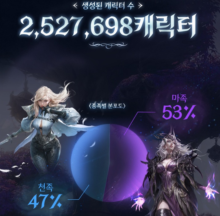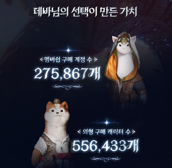 또, 출시 일주일이 지난 시점에서 생성된 캐릭터 수 2,527,698개, 총 플레이 타임 1,728,510,375분, 멤버십 구매 계정 275,867개, 외형 구매 캐릭터 수 556,433개 등 놀라운 수치의 기록들을 공개했다.