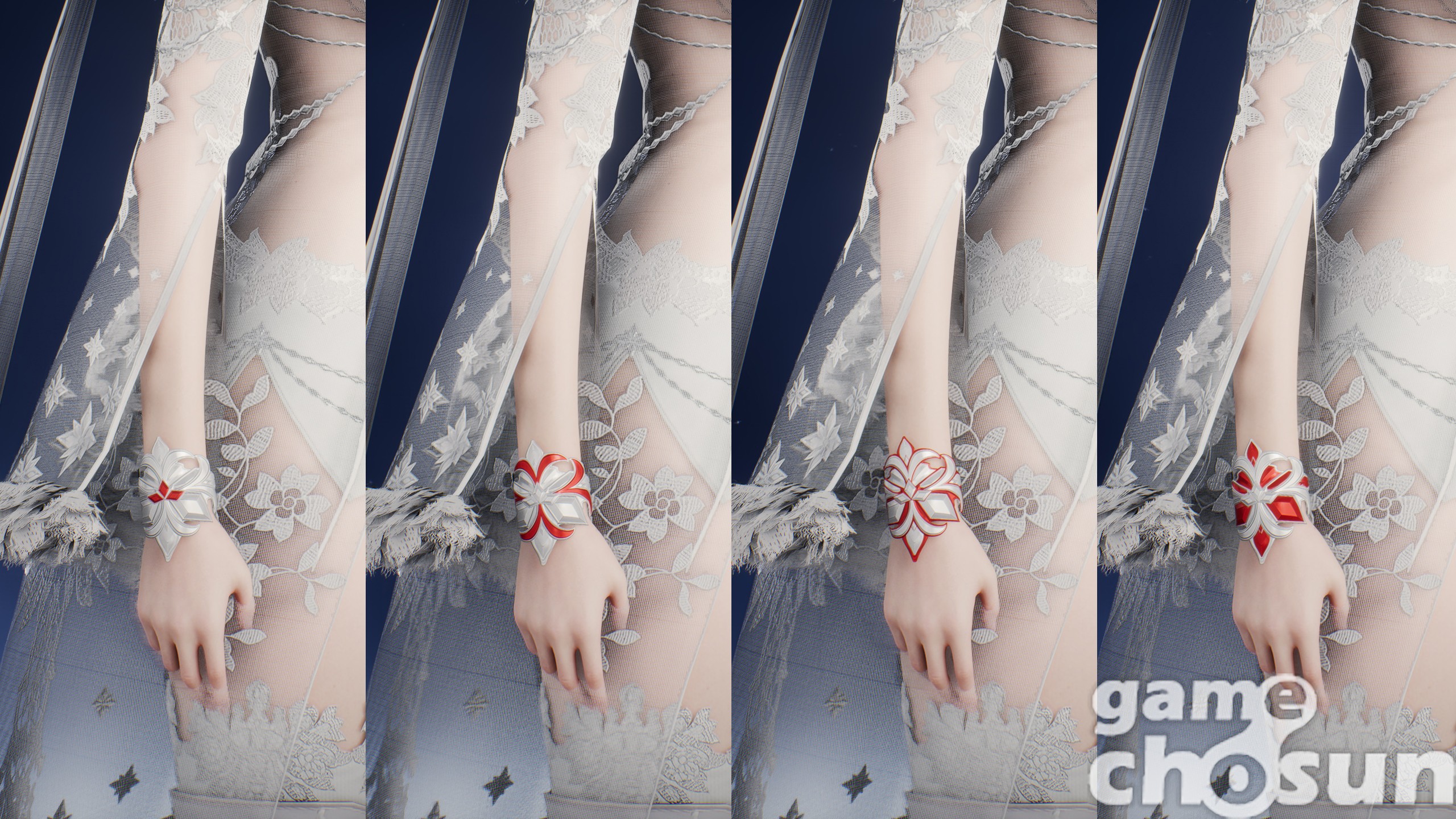다른 의상과 조합하기 쉬운 커프 형태의 의상이다. 게이머의 취향에 따라 다양한 색으로 꾸밀 수 있는 염색 부위가 매력 포인트. 맨손으로 다니기 허전하다면 알맞은 의상이다.