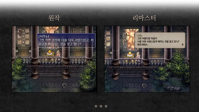 창세기전 외전: 서풍의 광시곡 리마스터의 변경점은 현시대 기기에 맞춰 1920x1080 와이드 비율 FHD 해상도 지원, 메인 스토리 풀보이스 지원, 편의성 개선 등입니다. 특히 원작의 답답한 진행행을 개선하기 위해 캐릭터 이동 속도와 적 조우율을 조정하고, 전투 시 자동 전투와 배속 조정, 조우 무시, 무기 내구도 무시, 무조건 후퇴 옵션 등을 추가할 예정입니다.