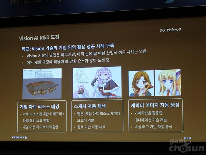 이를 통해 게임 개발에 필요한 무수한 시행착오와 소요 시간, 비용을 단축하는 등, 엔씨소프트의 새로운 경쟁력이 될 수 있을 것으로 기대하고 있다. 특히 최근에는 기계학습 기반의 그래픽스 기술을 연구 중에 있으며 기계학습을 활용하여 기존의 게임 그래픽스 품질을 높이고 애니메이터(Animator)의 수작업을 줄이기 위한 AI 기술들을 개발하는 데 주력하고 있다.