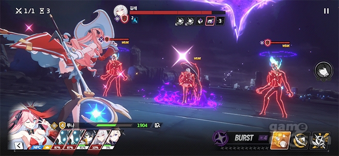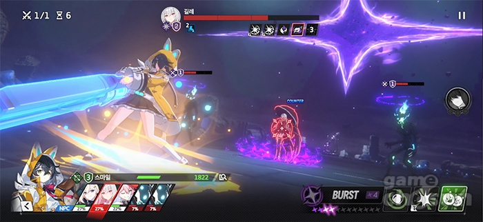 여기에 '강인도' 시스템과 '브레이크' 스킬에 의한 전술 지휘라든가, 캐릭터를 강화해서 더 강력한 스킬 효과를 기대할 수 있는 '노바 버스트'에 의한 강화 연출까지 따로 준비하면서 실제 전투를 즐기다 보면 내 선택 하나하나에 화면이 액티브하게 바뀌는 것을 볼 수 있습니다.