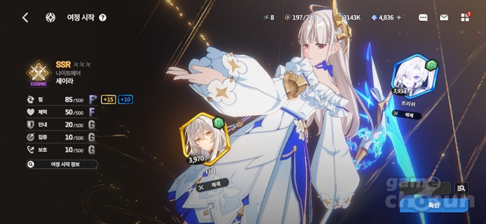 '여정'을 통해 캐릭터 하나를 트레이닝시키고 무사히 시험을 마치면 해당 '여정'이 기록된 '스텔라 아카이브'를 얻게 되는데, 이를 장착함으로써 캐릭터의 성능이 더해지는 방식입니다.