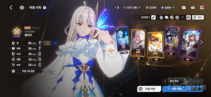 또, 하나는 육성이 너무 시간이 오래 걸린다거나, 뭐가 뭔지 잘 모르겠다거나 하는 분들을 위해 특별히 '자율 여정'을 지원합니다. 최초 1번의 플레이만 '여정'을 완료하면 '자율 여정'이 해금되므로 딸깍 한 번에 '스텔라 아카이브'를 만들어낼 수 있습니다.