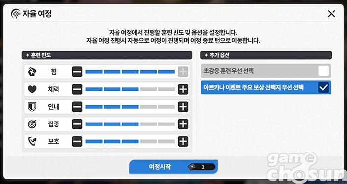 한 번의 여정에 더 좋은 스탯, 더 좋은 스킬을 얻기 위해서는 이러한 '여정'에 영향을 주는 '스텔라 아카이브'와 '아르카나'를 장착해 다양한 인연 이벤트와 추가 훈련 효과를 얻는 등 여정의 질을 높여야 합니다.