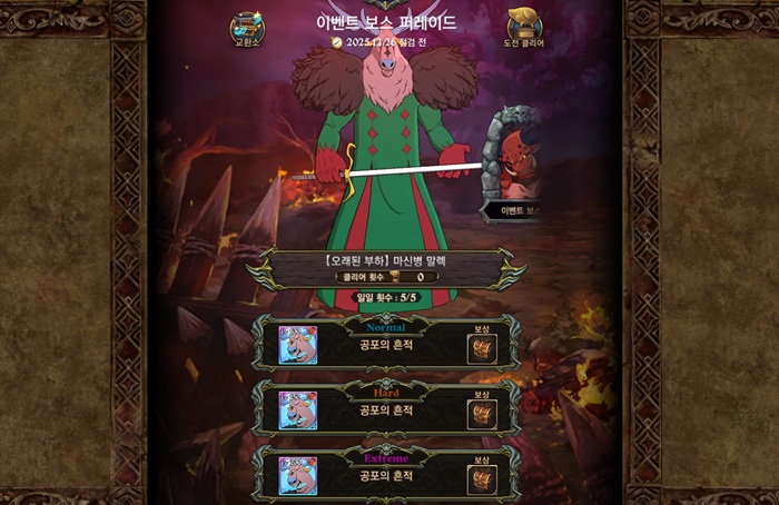 6.5주년 묵시록 페스티벌의 일환으로 이벤트 보스 퍼레이드 '말렉'이 등장한다. 말렉은 노말과 하드, 익스트림 등 총 3종의 난이도를 가지고 있으며 보스를 처치 후 획득하는 교환 아이템으로 뽑기 티켓과 아티펙트, 주점 꾸미기 가구 등으로 교환이 가능하다. 차주에는 이벤트 보스 퍼레이드의 마지막 보스로 '발루쟈'가 등장할 예정이다.