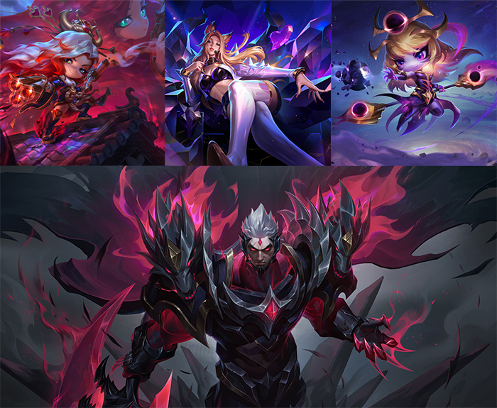 룬테라를 배경으로 삼은 만큼 챔피언의 관계를 보여주고 싶었다. 용감시단은 자르반과 쉬바나, 선택 받은 늑대는 암베사와 킨드레드를 위한 증강이다.